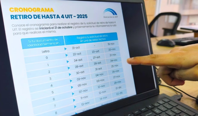 La gerente de operaciones de AFP Integra, Shirley Parodi, explicó que el primer cronograma se extiende del 21 de octubre al 18 de noviembre, con un dígito cada dos días; el segundo, del 19 de noviembre al 3 de diciembre, con un dígito por día; y finalmente, del 4 de diciembre al 18 de enero, el ingreso será libre, permitiendo el registro sin restricción de número de DNI.