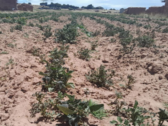 Los agricultores muy alarmados indicaron que los cultivos de maíz amiláceo, papa, camote y otros alimentos presentan marchitez de hojas, escaso crecimiento vegetativo y se presenta mayor presencia de plagas y enfermedades asociadas al estrés hídrico.