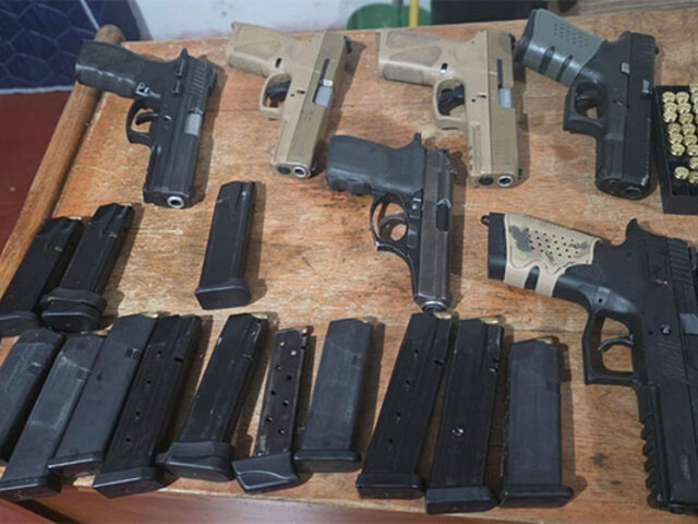 Producto de la exitosa intervención se lograron decomisar 6 pistolas (dos de ellas sin propietario identificado y otras dos sin licencia de portación), 13 cacerinas, 100 municiones, 15 modernos celulares y 3 radios de comunicación.