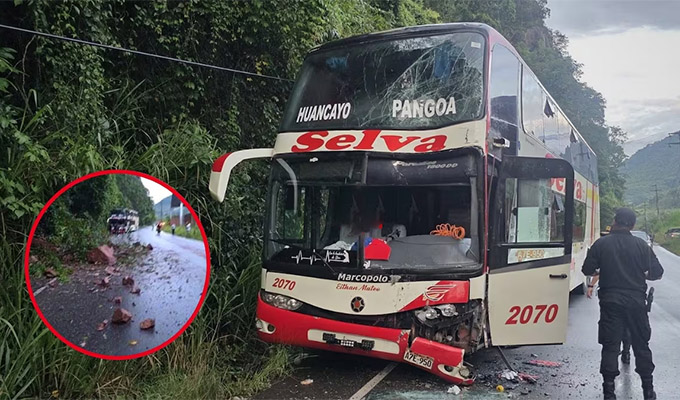 Según los pasajeros, el ómnibus de la empresa Selva impactó por la parte posterior contra una unidad de la empresa Huaribamba, que se había detenido al encontrar piedras de gran tamaño en medio de la carretera.