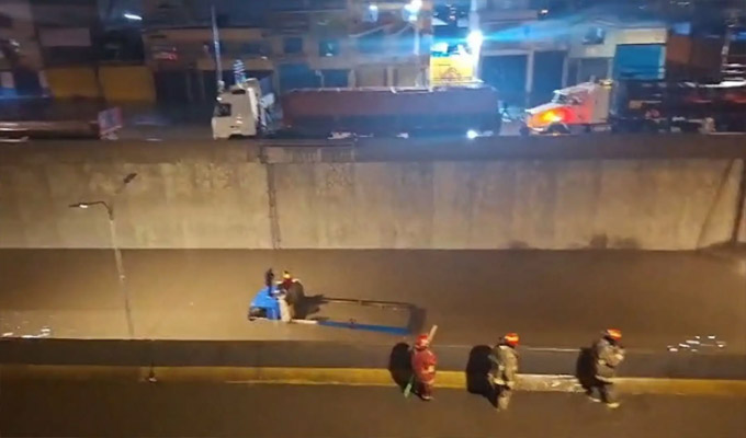 Fue necesaria la intervención de los bomberos para rescatar a los choferes de las unidades atrapadas. El zanjón es una obra relativamente nueva que tendría un deficiente sistema de drenaje.