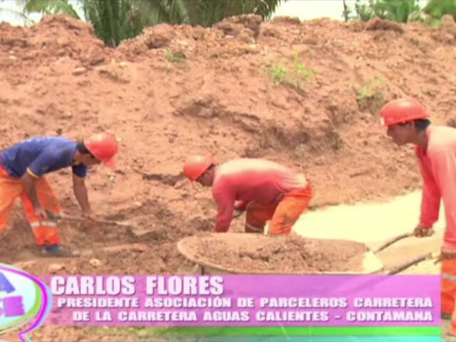 Nuestros enviados especiales llegaron hasta la ciudad de Loreto para comprobar la ejecución del la obra de mejoramiento de la carretera de Contamana - Aguas Calientes, una vía que posee más de 18 kilómetros y que conectará a 6 comunidades. Carlos Flores, presidente de la asociación de parceleros de la mencionada región, señaló que este proyecto beneficiará económicamente a miles de agricultores que en temporadas de lluvias demoran dos días en transportar sus productos.