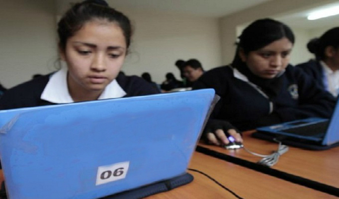 Cientos de niños de dos colegios de San Cosme recibieron de parte de Pronabec, 75 laptops que no contaban con disco duro ni memoria.