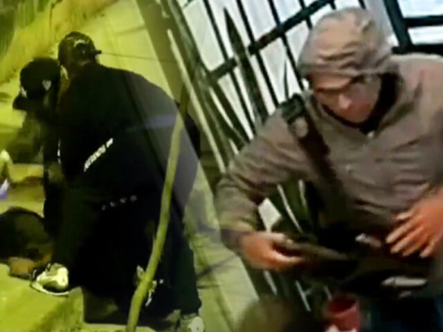 Otra cámara de seguridad registró el preciso momento en que dos delincuentes atacan a un grupo de personas que estaban en plena mudanza. Tras reducirlos, los sujetos se suben a la camioneta y se dan a la fuga con todas las pertenencias a bordo.