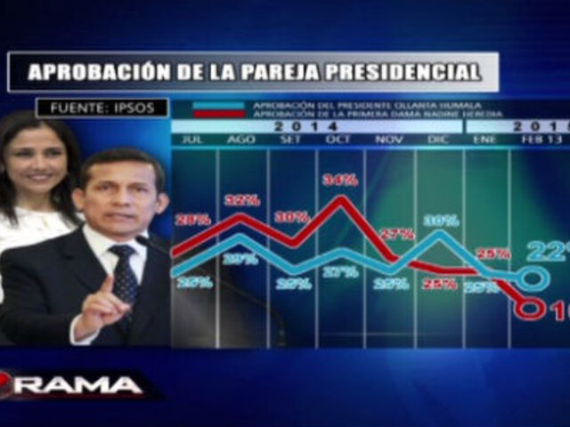 Ollanta Humala y Nadine Heredia sufren nueva caída en su aprobación, según última encuesta de Ipsos. Además en Panorama, el curriculum que la primera dama presentó ante la fiscalía.