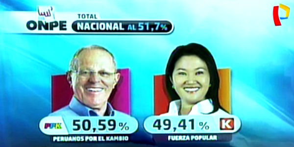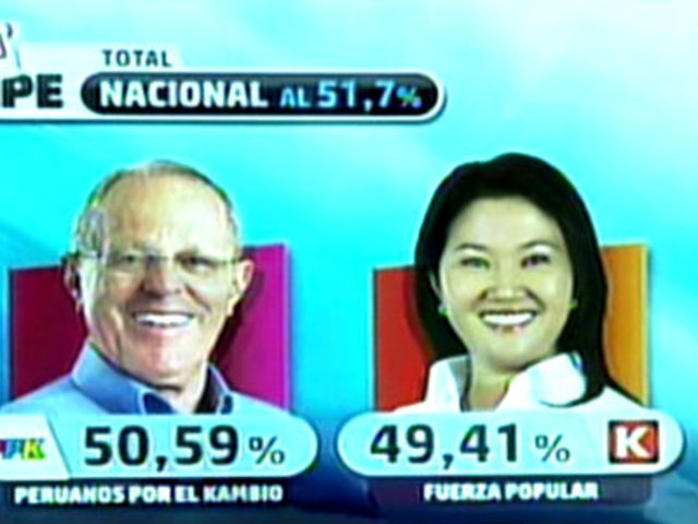 ONPE al 51.7.1%: PPK 50.59% y Keiko Fujimori 49.41%