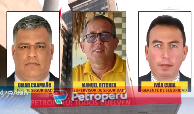 Se trata de Omar Caamaño, jefe de seguridad; Manuel Ritcher, supervisor de seguridad; e Iván Cuba, gerente de seguridad, quienes fueron despedidos al comprobarse que actuaron en complicidad para desaparecer pruebas que incriminen a Hugo Chávez, entonces gerente general de Petroperú.