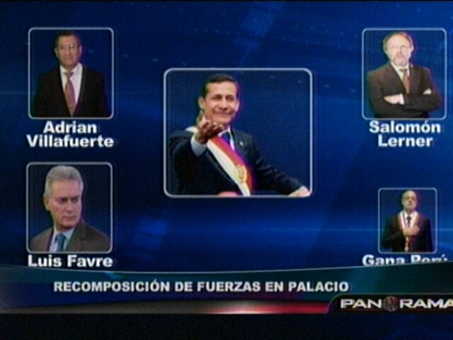 En el siguiente reportaje de Panorama conozca a los asesores del jefe de Estado como Luis Favre, y Adrián Villafuerte, estos cuestionados por su influencia sobre el mandatario, mientras que el primer ministro Salomón Lerner, y la bancada de Gana Perú buscan encontrar un lugar con mayor preponderancia dentro del Ejecutivo, a continuación vea la recomposición de fuerza en Palacio de Gobierno.