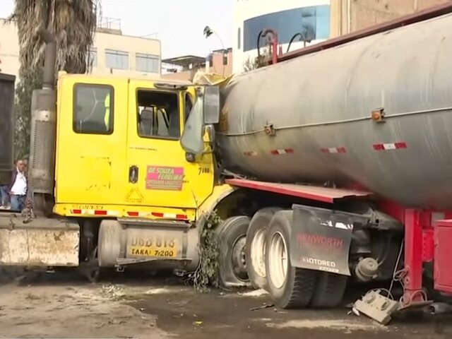 El choque se registró en la avenida Canta Callao, donde un tráiler impactó contra un auto y luego con una cisterna cargada de gasolina.