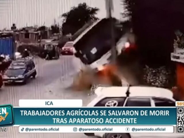 Un grupo de trabajadores agrícolas vivió momentos de terror luego que el bus que los trasladaba terminara protagonizando un aparatoso choque a plena luz del día en la ciudad de Ica.