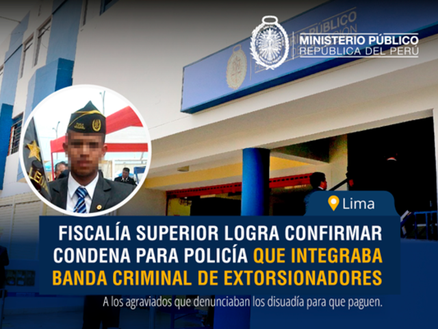 La Fiscalía Superior de Lima consiguió que se mantenga firme una condena de siete años y seis meses de prisión efectiva contra el suboficial de la Policía Nacional del Perú (PNP) Paul Galarza, acusado de formar parte de una organización delictiva dedicada a la extorsión. El efectivo policial aprovechaba su posición en la comisaría de Barboncito, en San Martín de Porres, para manipular a las víctimas y evitar que presenten denuncias formales.