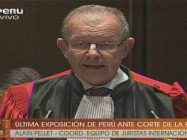 Alain Pellet, agente peruano, pidió a la corte que no sólo revise el tratado de 1952 sino que también lo interprete. "No existe frontera marítima acordada entre Perú y Chile" sentenció.
