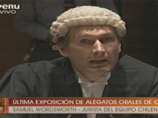 Samuel Wordsworth, defensor chileno ante La Haya, interviene por primera vez en estas dos semanas de alegatos. El abogado exhibió elementos probatorios en los que el Gobierno peruano aceptaba una frontera específica. "Perú ha sido incapaz de presentarle bases jurídicas", comentó respecto a la ausencia de pruebas sobre un supuesto acuerdo que establece una línea de pesca provisional. Para Chile está claro que en la Declaración de Santiago no se habla por ningún lado de una línea para definir la pesca, "por mucho que lo diga Perú", agregó.