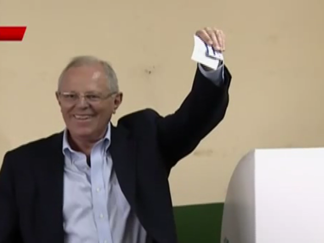 Pedro Pablo Kuczynski, candidato de Peruanos por el Kambio, acudió en medio de gran expectativa al colegio El Olivar, en San Isidro, donde durante la mañana realizó su voto.