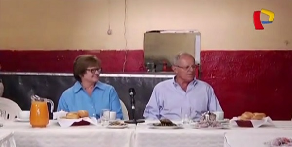 Pedro Pablo Kuczynski llegó al comedor popular de La Victoria junto a su esposa Nancy.