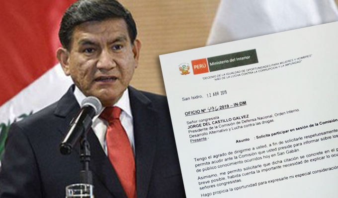 “Me permito solicitarle que dicha citación se concrete en el plazo más breve posible, habida cuenta la importante necesidad de explicar lo ocurrido a los señores congresistas”, pidió el titular del Mininter.