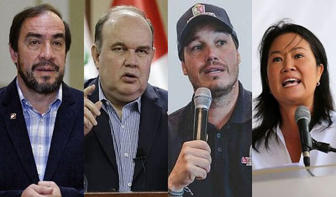 En segundo lugar, empatan los candidatos Rafael López Aliaga (Renovación Popular), George Forsyth Sommer (Victoria Nacional) y Keiko Fujimori Higuchi (Fuerza Popular), con el 7% de intención de voto.