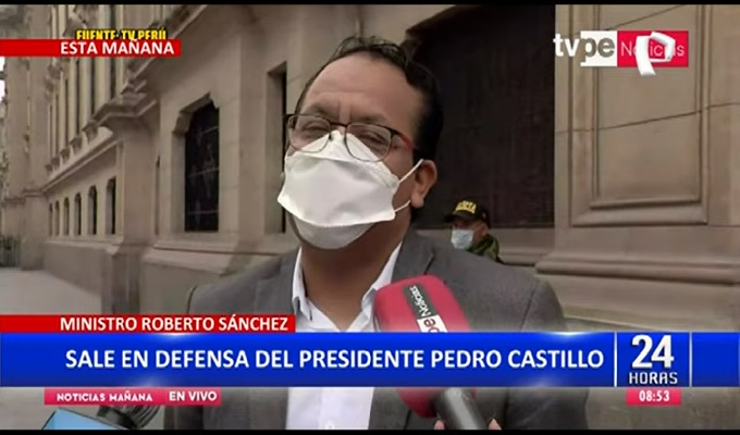 Del mismo modo, el Ministro de Comercio Exterior y Turismo del Perú, Roberto Helbert Sánchez Palomino, no pudo evitar pronunciarse acerca de las investigaciones en contra de la actual vicepresidenta y ministra, Dina Boluarte.