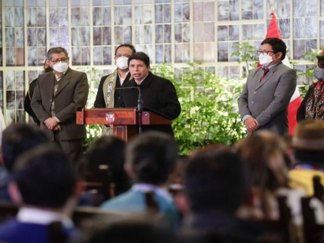 El presidente Pedro Castillo encabezó una reunión con las bases sociales y con dirigentes de Lima Metropolitana en Palacio de Gobierno, encuentro en el que estuvieron presentes el ministro de Trabajo, Alejandro Salas, el ministro de Justicia, Félix Chero y el ministro de Comercio Exterior, Roberto Sánchez.