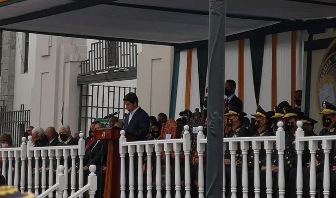 Pese al incidente, el jefe de Estado continuó con su participación en la ceremonia, subió al estrado y saludó “a nombre de todo el pueblo peruano” a los miembros de este escuadrón especial.