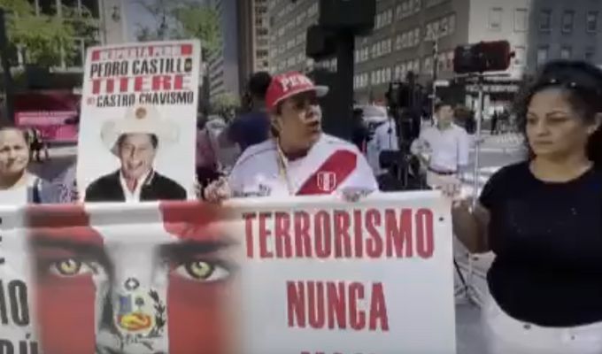 Un grupo de peruanos en los Estados Unidos, se hicieron presentes en los exteriores de la sede en donde se lleva acabo la 77ma Asamblea General de las Naciones Unidas, en New York, para alzar su voz en protesta contra el presidente de la República, Pedro Castillo.