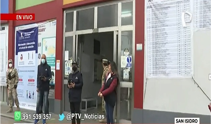 Desde las 6:30 de la mañana había algunas personas haciendo cola. En la puerta de la institución educativa, ubicada en el distrito de San Isidro, personal de la ONPE y el Jurado Nacional de Elecciones (JNE) esperan para orientar a los miembros de mesa.