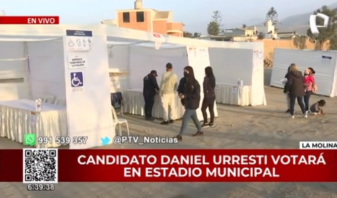 Urresti votará en el aula 101 de este centro deportivo que ya abrió sus puertas. Recordemos que el candidato ofreció la noche de este jueves dos mítines de cierre, el primero en Ate Vitarte y el otro en Breña, con los que cerró una extensa campaña.