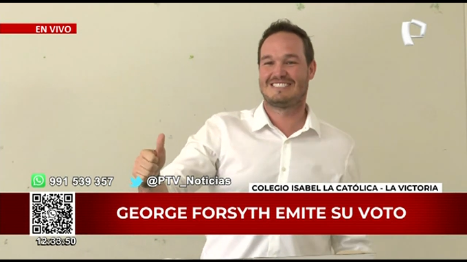 Por su parte, el candidato a la alcaldía de Lima, por Somos Perú, George Forsyth, habría manifestado sentirse tranquilo por los resultados, además aprovechó para agradecer el apoyo de la población, e invitar a los que falten emitir su voto, que acudan en estos últimos minutos.