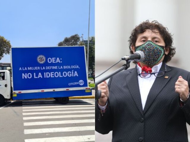 A través de sus redes sociales, la parlamentaria publicó un video donde se ve el camión que lleva la frase: "OEA: A la mujer la define la biología, no la ideología " salir de las instalaciones del Parlamento.