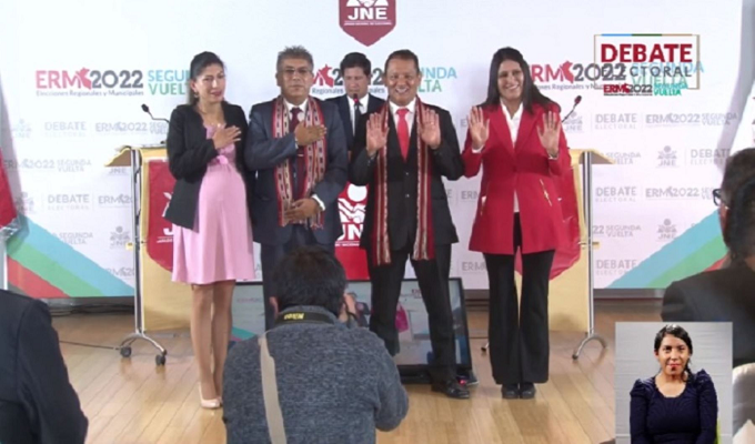 Los nueve debates organizados para la segunda vuelta en el contexto de las Elecciones Regionales y Municipales 2022, contaron con interpretación de lengua de señas, a fin de garantizar que las personas con discapacidad puedan participar y ejercer su derecho al voto en igualdad de oportunidades.