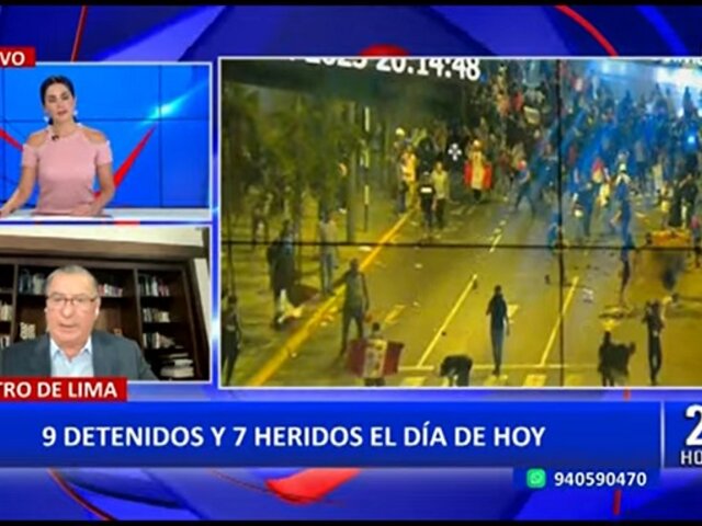 “Éstos señores meten bombardas, fierro, piedras, ondas y están ahí caminando tranquilamente y eso es lo que la población está reclamando y ojalá que lo que se está haciendo en Lima se replique en todo el país (...) La policía tiene que tener apoyo político, estas marchas no se van a solucionar con una policía de contención que aguante los golpes o los ataques de los manifestantes, esta marcha es netamente política y sus reclamos no son sociales”, finalizó.