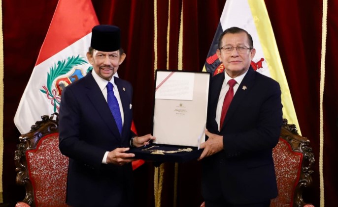 El sultán de Brunéi agradeció la distinción, señalando que la medalla representa la rica historia del Perú. Además, expresó su esperanza de que esta visita propicie el fortalecimiento de las relaciones comerciales y empresariales entre ambos países.