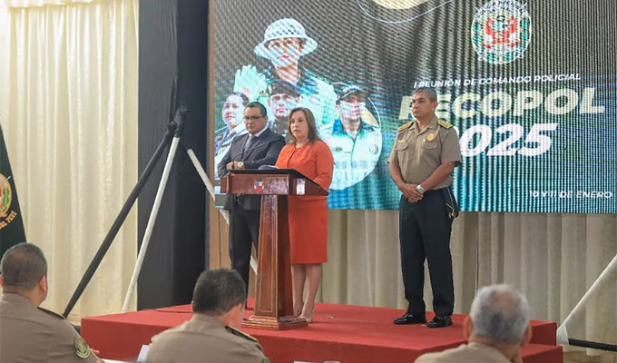 Esta mañana, la mandataria Dina Boluarte participó en la primera reunión del Comando Policial (Recopol 2025), que se desarrolló en La Molina. Durante su discurso, ratificó su inquebrantable compromiso con el fortalecimiento de la Policía Nacional y la mejora de la seguridad ciudadana.