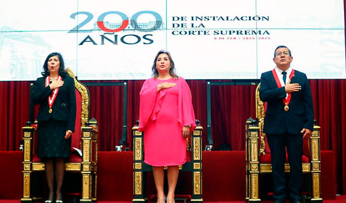 Durante la ceremonia por el bicentenario de la Corte Suprema, la presidenta del Perú, Dina Boluarte, afirmó que la unidad de todas las instituciones del Estado es clave para enfrentar la criminalidad de manera "firme y eficaz".