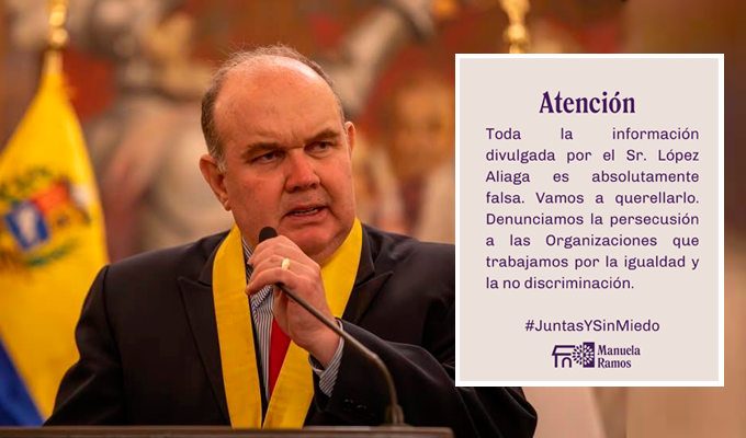 La ONGManuela Ramos anunció que procederá legalmente contra el alcalde de Lima, Rafael López Aliaga, tras sus declaraciones en las que acusó a la organización de apropiarse indebidamente de un millón de dólares otorgados por la Agencia de los Estados Unidos para el Desarrollo Internacional (USAID).