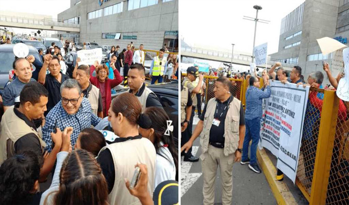 Estas personas también tenían pancartas y gigantografías alusivas a la investigación que enfrenta el titular del Interior en la Fiscalía, por el presunto delito de abuso de autoridad por los audios con el capitán de la Policía Nacional, Junior Izquierdo, 'Culebra'.