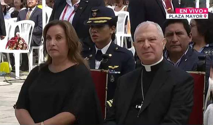 El acto solemne se desarrolló en el Patio de Honor de Palacio de Gobierno. En su mensaje, la jefa de Estado dijo que la permanente dedicación y amor a Dios del Sumo Pontífice quedaron grabados en el corazón de todo el mundo.