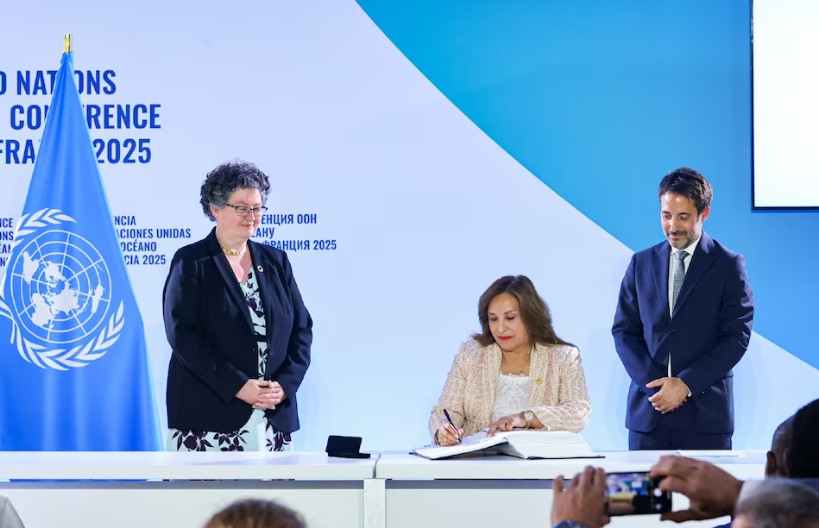 La presidenta Dina Boluarte fue denunciada penalmente por presunta traición a la patria tras suscribir el Tratado de Alta Mar, durante la III Conferencia de la ONU sobre el Océano, en Francia. La demanda fue interpuesta ante la Fiscalía por el periodista C. Alfredo Vignolo G. del V.