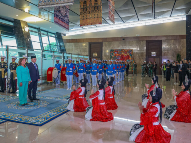La mandataria fue recibida con honores militares protocolares en el marco de su agenda en este país. El programa oficial incluye su participación en el Foro de Negocios Perú-Indonesia "Unlocking Bilateral Growth", orientado a fortalecer la asociación bilateral mediante el Acuerdo de Asociación Económica Integral (CEPA).