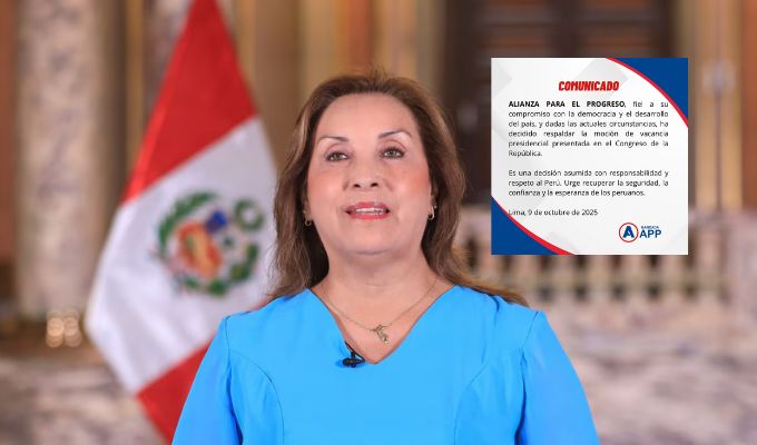 A través de un comunicado, la bancada de Alianza Para el Progreso (APP), se refirió a la moción de vacancia contra la presidenta Dina Boluarte, por presunta "incapacidad moral" tras el atentado a balazos contra la orquesta Agua Marina.
