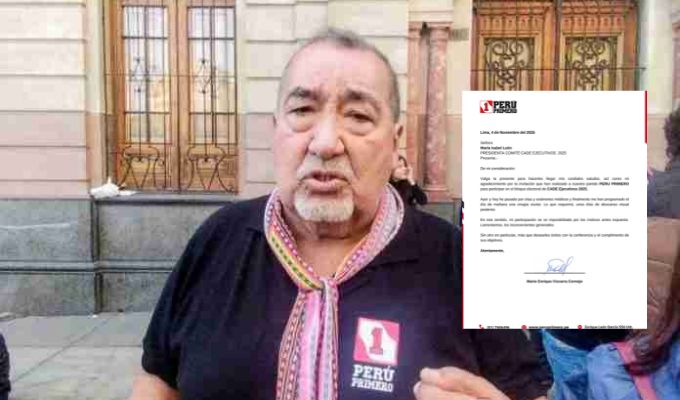 A través de sus redes sociales oficiales, el partido político Perú Primero informó que su candidato a la Presidencia de la República, Mario Vizcarra, no participará del bloque electoral del CADE Ejecutivos 2025, al cuál había sido invitado.
