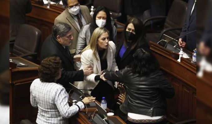 Congresista de Acción Popular perdió los papeles y jaloneó a la legisladora de izquierda en el hemiciclo de sesiones en agosto de 2022.