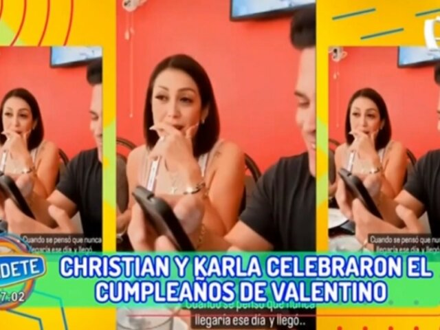 Celebraron un momento especial. Karla Tarazona y Christian Domínguez se juntaron por el cumpleaños de su hijo Valentino, quien ayer domingo 26 de marzo cumplió 7 años. Ellos decidieron realizar un almuerzo para compartir con el pequeño que no pudo evitar su emoción por estar al lado de sus padres.