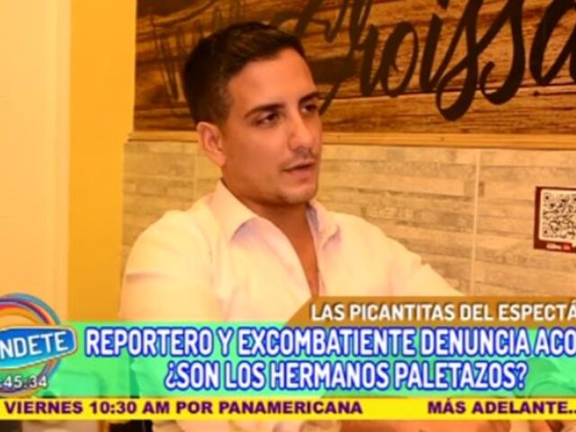 El exintegrante de ‘Combate’ y actual reportero, Álvaro Pérez Moral, realizó una grave denuncia en una entrevista con Anthony Casimiro. Este confesó que en una oportunidad le habían propuesto tener relaciones sexuales a cambio de trabajo. Estas acusaciones encendieron las redes sociales ya que vincularon a los Gemelos Paletazos como los presuntos acosadores.