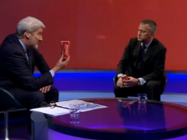 Un presentador de la BBC muestra (0:59) a James Quincey, presidente de Coca-Cola Europa, cuánto azúcar hay realmente en un vaso de Coca-Cola (23 cucharaditas de azúcar en un vaso pequeño.