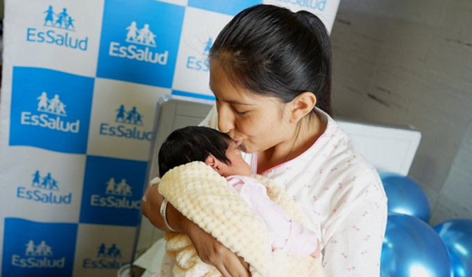 El anhelado sueño de ser madre se hizo realidad para Flora, una paciente asegurada. Su cuadro era de alto riesgo, con enfermedades y complicaciones, pero a pesar de ello trajo al mundo a una hermosa bebé en un parto por cesárea asistido por médicos del Servicio de Ginecología y Obstetricia del Hospital Nacional Guillermo Almenara de Essalud.