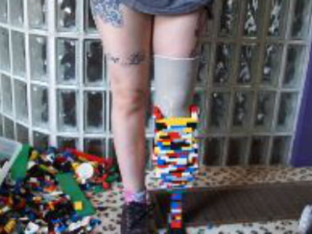 La investigadora inglesa, Christina Stephens, decidió utilizar una prótesis hecha con ladrillos de colores, que ella misma construyó y que remplazará su pierna izquierda, la cual perdió a inicios de este año en un accidente con su vehículo. El video en que ella muestra su inusual prótesis generó millones de visitas en Youtube, además de comentarios que felicitan su iniciativa y buen gusto.