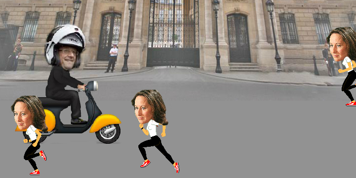 Con la ayuda del mouse, los internautas deben sortear en moto diversos obstáculos: a los "paparazzi", a la exesposa de Hollande, Ségolène Royal, y a la actual primera dama, Valérie Trierweiler. Pese a que se ve muy simple, el juego se ha vuelto muy popular y su enlace ha sido compartido por más de 100.000 usuarios de las redes sociales. Aquí el enlace