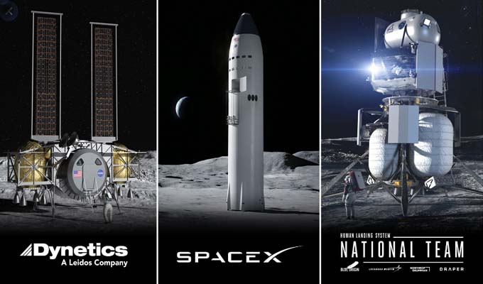 De acuerdo con la página web de la NASA, las compañías que fueron seleccionadas para diseñar y construir sistemas de aterrizaje humano son Blue Origin, Dynetics (de la compañía Leidos) y SpaceX.