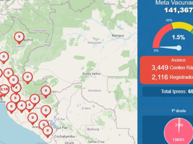 La herramienta digital incluye un mapa que permitirá seguir paso a paso número y porcentaje de personas vacunadas por región, provincia y distritos, en primera y segunda dosis de la vacuna de Sinopharm.